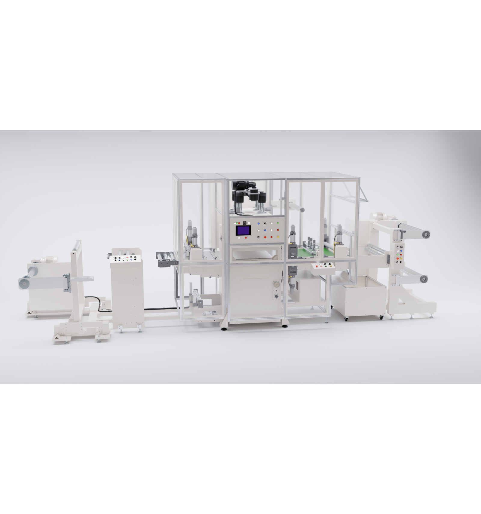 Material coming from multiple rolls with lamination process.