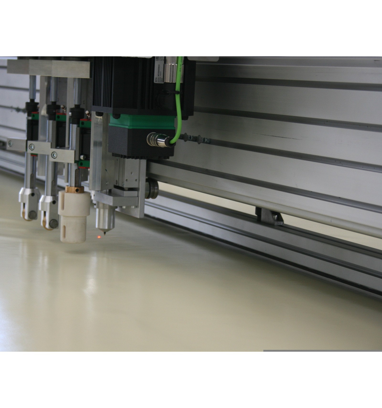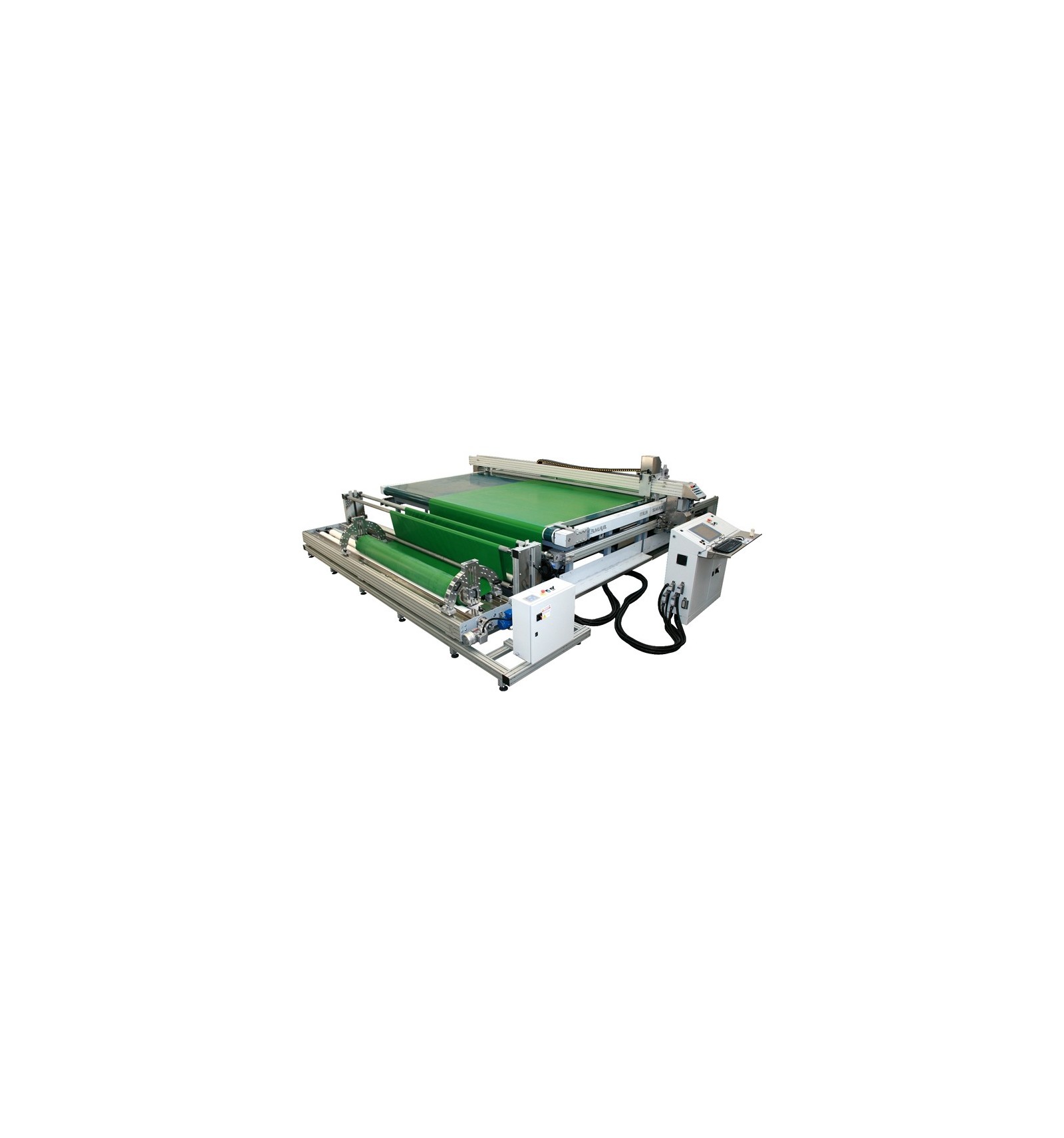 ![]() Conveyor cutting plotter with revolutionary fabric transportation system and multiple layer conveyor belt Cutting area : width 1600mm à 4000mm x 3000mm Fixed blades, Oscilating blades, Creasing, Marking Cutting Edge developed an innovative solution for the movement of the fabric. While the fabric is being spread on the work top, two lateral grippers and a horizontal pressing bar simultaneously block the conveyor belt and the fabric, so that the movement of belt and fabric is completely synchronized, thus avoiding the fabric from slipping out of position.