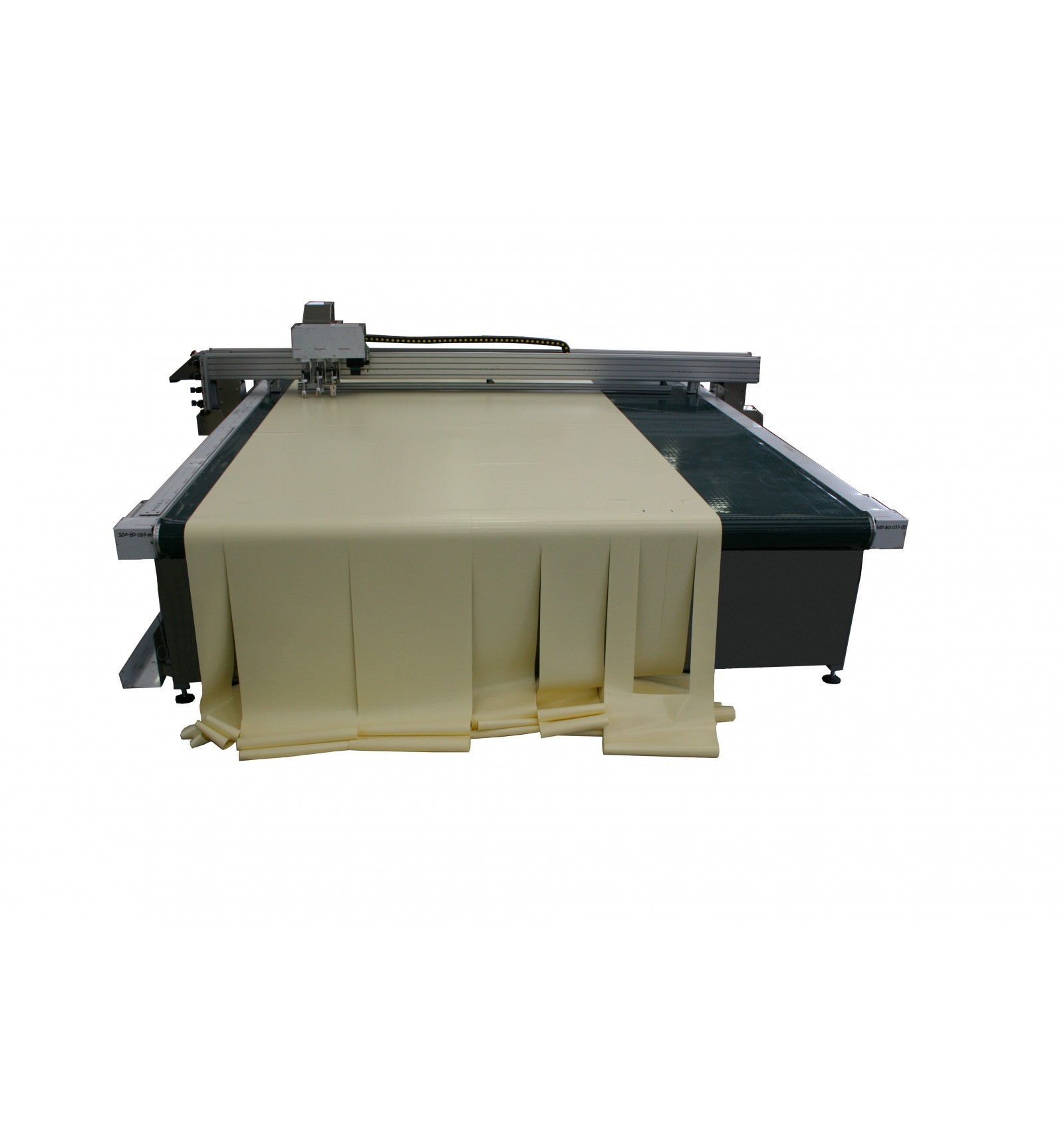 The SM-320-TA conveyor belt is made of extremely sturdy, multiple-layer industrial fabric that, when used correctly, can handle years and years of intensive production without needing to be replaced, ever. The Cutting Edge belt has such high resistance that it goes well beyond comparison with conveyor belts installed on machines made by other manufacturers. The difference is not only its duration, but also its reliability and the quality of the cut. Belts installed by other manufacturers will lose their shape after a few months of intensive cutting, severely compromising the precision of the cut. The multiple layers of the Cutting Edge conveyor belt guarantee an extremely long lifetime and great cutting precision. Even belts that are intensively used look like new, even after years of intensive, heavy duty cutting.